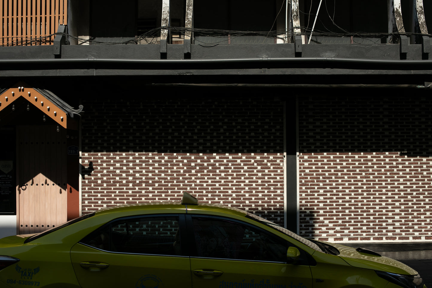 '' This shot was waiting for this taxi. During one of my photography trips around Bangkok, I found this place, beautiful light, even more beautiful shadows, and these diverse textures.